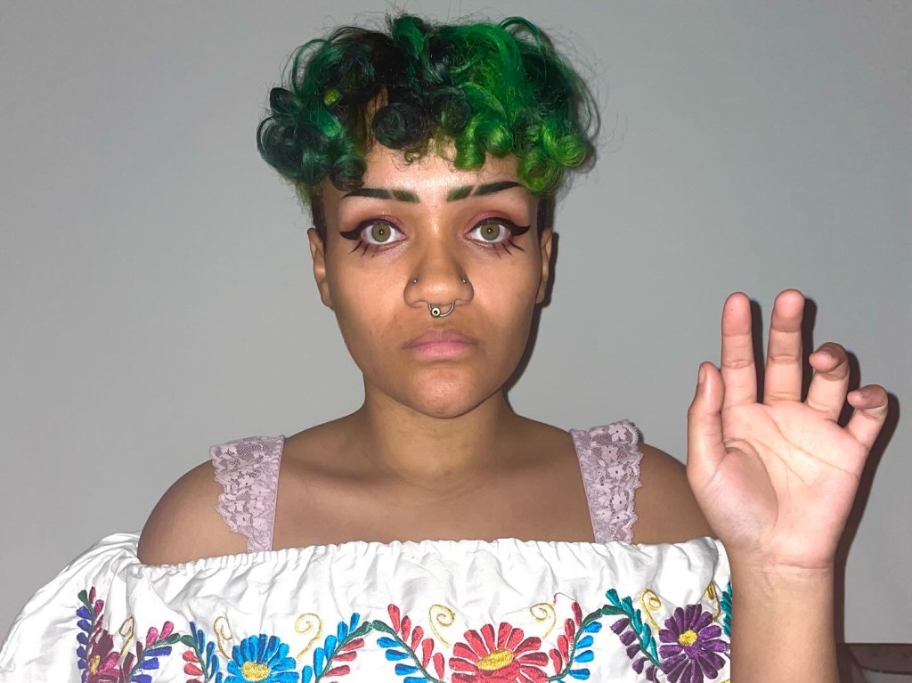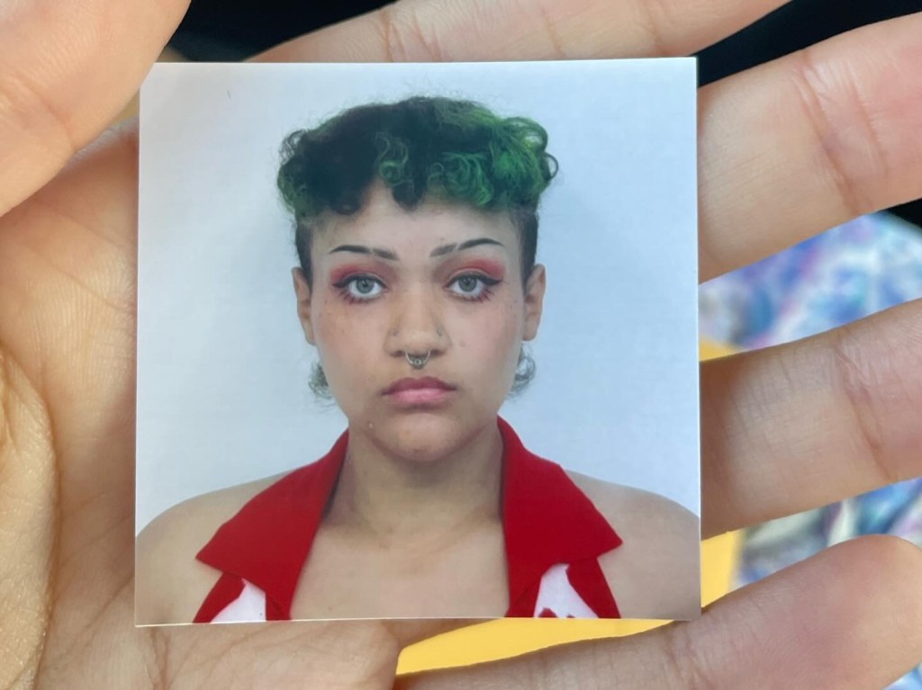En La Frente draws from the saying “Tienes el nopal en la frente,” and how my relationship with Mexican culture has become extremely strained since moving to MN and my granny’s passing. My connection to my culture is now reliant on google searches and pop culture references. I feel the genuineness deplete a little bit everyday. I rely on stereotypes to feel that connection still. On Friday I renewed my state ID, and last summer I got my passport so I could visit Monterrey for the first time in 14 years. My mom and my partner said I looked like my granny in my passport photo. I was mean mugging by accident, eyebrows arched with a halter top and a straight face. What an honor to be compared to her.