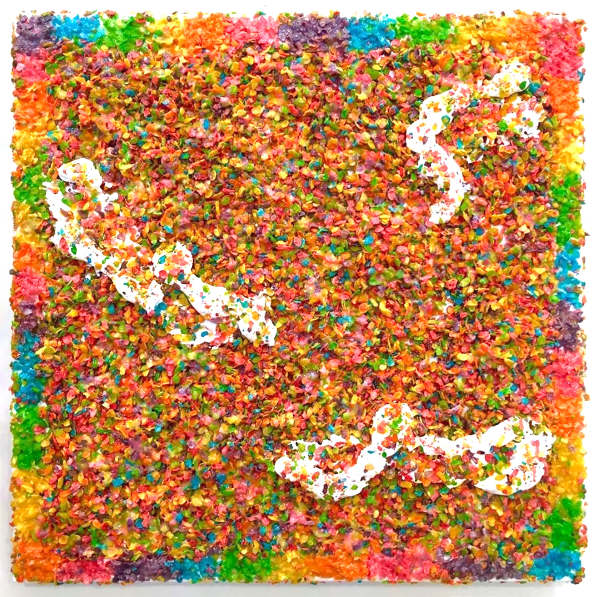 Fruity Pebbles and Gesso on Canvas